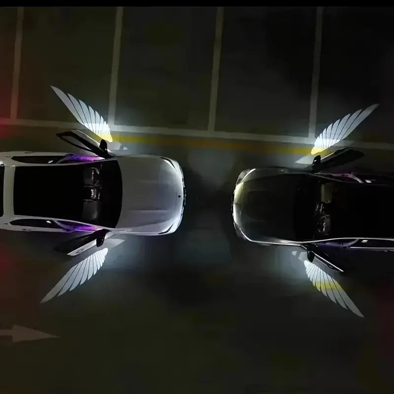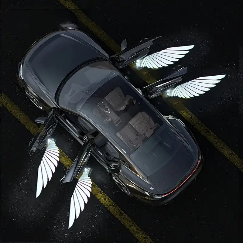 2pcs/set Ultra bright LED door projector light with Angel Wings design Decorative light Ambient light, black carbon fiber finish, illuminating Angel Wings